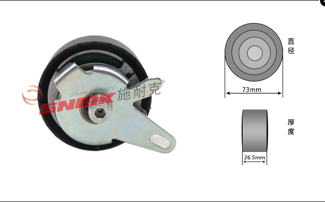 Timing tightening wheel: A28254 OE: 059109243F scroll spring automatic timing tightening wheel, working principle: optimize the structure on the basis of mechanical tightening wheel. Using a scroll spring combined with a side plate to generate a constant torque, it automatically supplements the tension while absorbing the amplitude of the belt span.